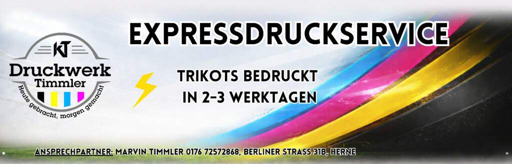 Druckwerk Timmler ist eine spezialisierte Textildruckerei. Das Unternehmen wird als Familienbetrieb geführt und ist auf die Veredelung von Textilien für Firmen, Vereine und Teams spezialisiert. Selbstverständlich arbeiten alle Mannschaften des VfB Börnig seit einiger Zeit eng und zuverlässig mit dem sehr freundlichen Team zusammen.
