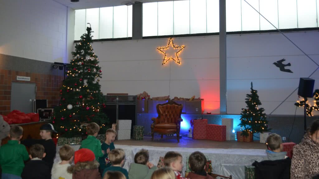 Beginnend mit den Minikickern bis zu den D-Junioren durften die Spielerinnen und Spieler dann zum Nikolaus auf die Bühne kommen und sich ihr Geschenk abholen.